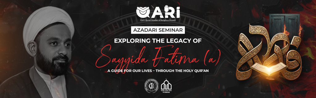We are humbled to invite you to a deeply meaningful event: QARI’s Inaugural Azadari Seminar, Exploring the Legacy of Sayyeda Fatima (a.s): A Guide for our Lives – Through the Holy Qur’an, being held on Friday, 7th November 2025, 7pm with Nyaz, at the Husaini Islamic Centre, Burton Street, Peterborough PE1 5HD.